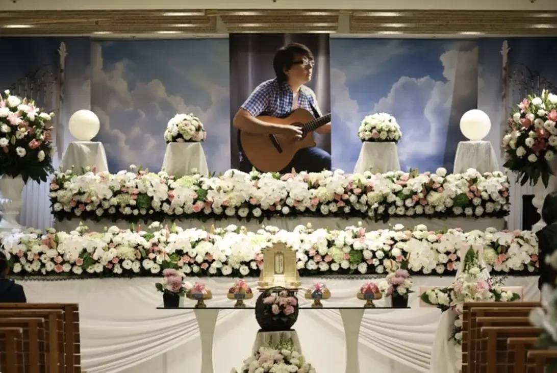 3月10日台北市第二殡仪馆的清晨,白色花海簇拥着灵堂中央那张弹吉他的彩色遗照。57岁的音乐人袁惟仁在经历七年病痛后,以这样庄重而温馨的方式与世界告别。灵堂里循环播放着他写给那英的《征服》,熟悉的旋律混着亲友的啜泣声,成了这场送别最催泪的背景音。 人群中最让人揪心的是袁惟仁90岁的老母亲。本该安享天伦的老人,此刻穿着素服,被孙女袁融搀扶着站在遗照前。她花白的头发在冷风中微微颤抖,红肿的双眼死死盯着儿子年轻时的笑脸,手里攥着的纸巾早已湿透。“昨晚梦见他变回小时候的样子,看了我一眼就走了。”老人哽咽着对前来慰问的亲友说,这句朴实的话让在场所有人红了眼眶。按照传统,白发人本不该送黑发人,但老人坚持要来送最小的儿子最后一程,这份白发人送黑发人的痛,是世间最沉重的告别。